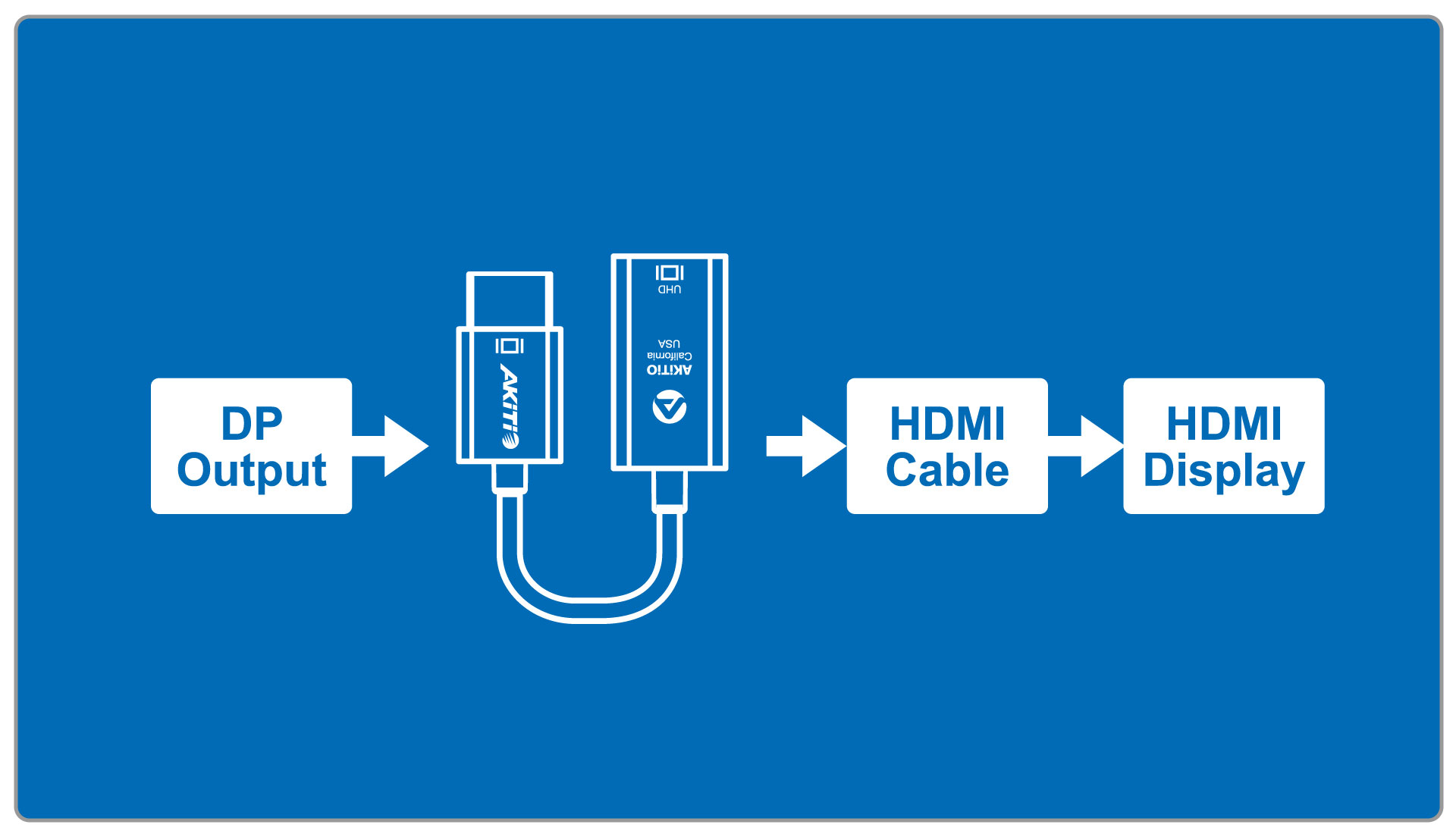 The active DisplayPort 1.2 to HDMI adapter cable connects a DisplayPort (DP) equipped system to an HDMI enabled display or projector.