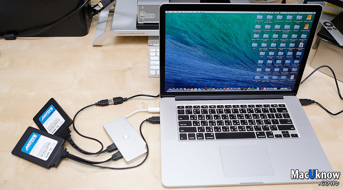 The first method is by using the AKiTiO Thunder Dock, a Thunderbolt docking station. However, if you feel that this kind of device is a bit too big and would prefer a more affordable solution, the upcoming AKiTiO Thunder SATA Go, a little Thunderbolt to eSATA adapter might just meet your requirements.