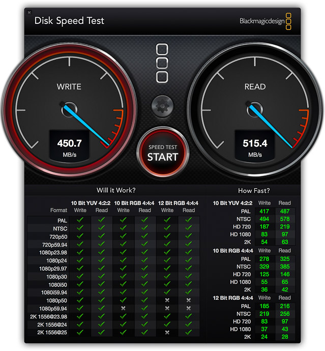 With this kind of setup and an AKiTiO 1TB SSD, we can achieve write speeds of up to 450 MB/s and read speeds of up to 515 MB/s, which is really fast!