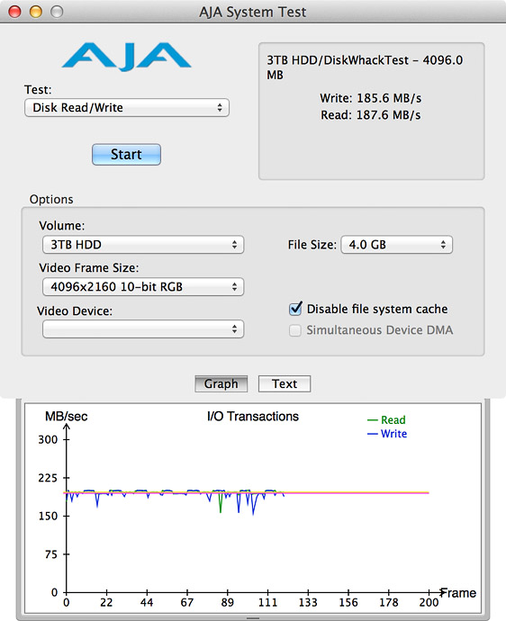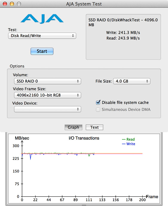Here is the same test using the AJA System Test instead with very similar results.