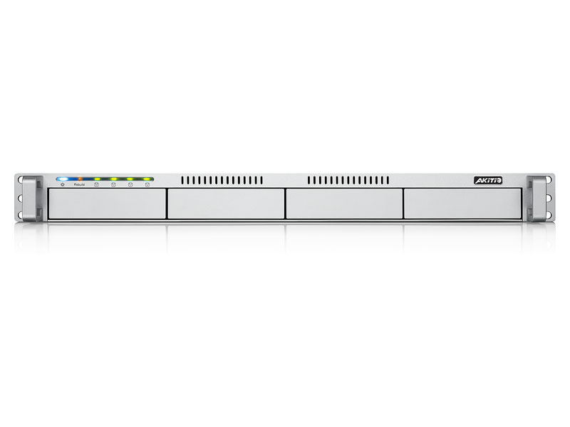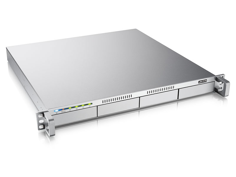 The MD4 U3e was a 1U 19" rack-mount chassis with built-in hardware RAID designed for up to four 3.5" hard disk drives. It featured a hot swap rack and a dual interface with eSATA and USB 3.0.