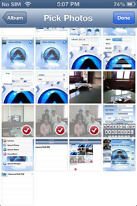 - Tap all the images you would like to upload. The selected images are marked with a tick. When you are ready to upload the files, click Done.
