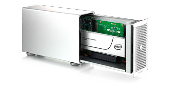 The Taurus Super-S3 LCM was a dual-bay RAID storage enclosure with a versatile interface, including eSATA, FireWire 400, FireWire 800 and USB 3.0. It could house two 3.5-inch SATA drives setup in RAID 0 or RAID 1.