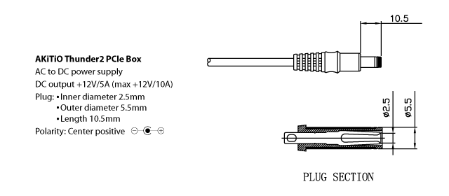 With the standard 60W power supply, the power output through the PCIe slot of the AKiTiO Thunder2 PCIe Box is 25W. The biggest power supply that is supported is 120W.