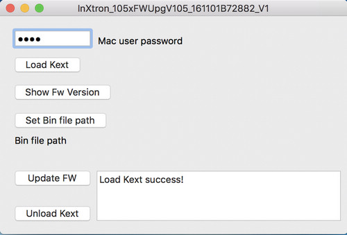 - Enter the user password of your computer and then click Load Kext to load the kernel extension.
