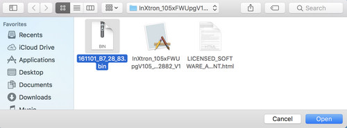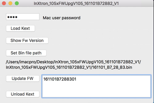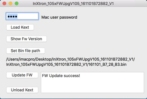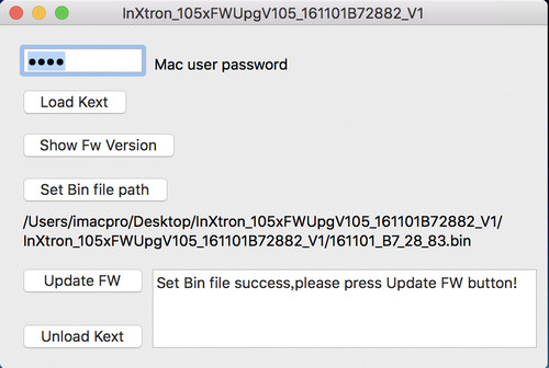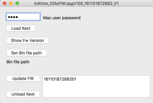 - Open the InXtron_105xFWUpgV105_161101B72882_V1 app.