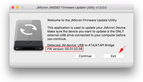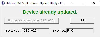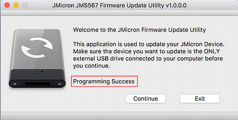 - When the update is completed, the device will unmount and mount again. Click Exit to close the program.