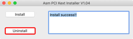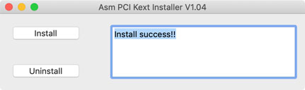 - Click Install to install the kernel extension. After sucessfully installing the extension, keep this program open until the firmware has been updated, so that you can uninstall the extension again at the end.