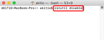 - Type csrutil disable to disable System Integrity Protection (SIP).