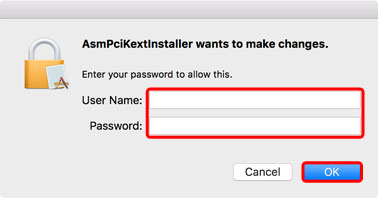 - Enter your user name and password. Click OK to allow the program to install the kernel extension.