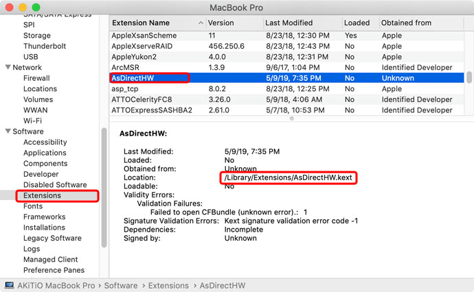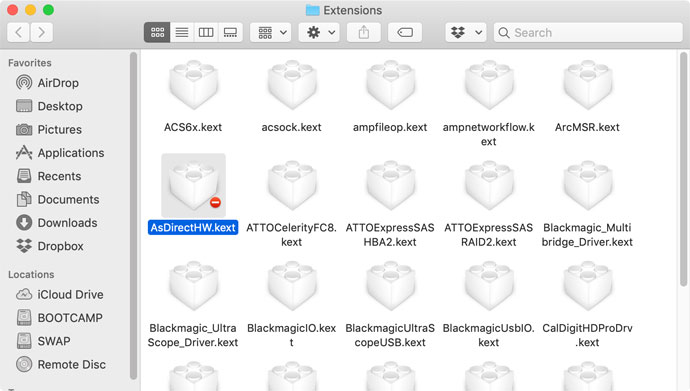 - Check the location of the driver and go to the corresponding folder (e.g. /Library/Extensions).
