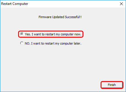 - When the update has been completed, you will be prompted to restart the computer. Click Finish to restart the computer.