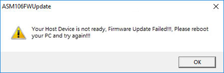 - If your PC has a built-in AMS106x SATA controller, the utility will be unable to update the firmware and following error message will appear. Please use a different PC to udpate the firmware.