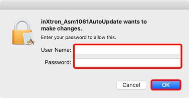 - Enter your user name and password. Click OK to allow the program to install the kernel extension.