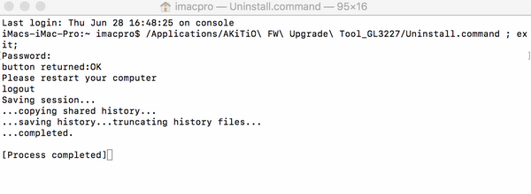 - Wait until the process as completed. When done, close the Terminal windows and restart your system.