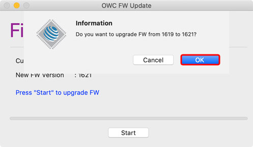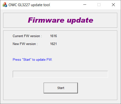 - If your current firmware version is older than the new firmware version, click Start to update the firmware.