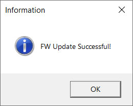 - Wait until the firmware update has been completed and then click OK to close the confirmation window.