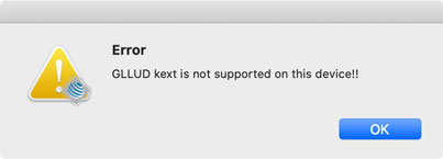 If the device and/or the SD card are not recognized correctly by your system, the message "GLLUD kext is not supported on this device!" will be shown. Please remove the SD card, insert it again and then attempt to update the firmware again.