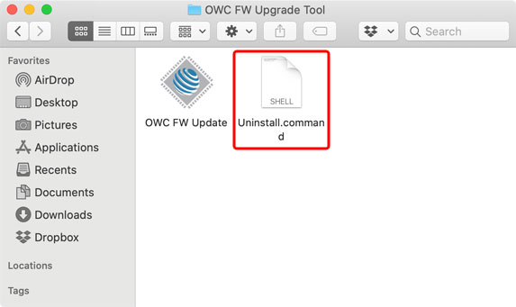 - Use the Finder and locate the folder of the firmware utility inside the Applications folder. Open 'Uninstall.command' to remove the firmware utility.