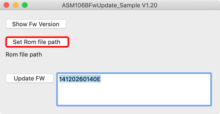 - Click Set Rom file path and select the latest firmware (e.g. 2064_01.ROM) that is included in the downloaded file.