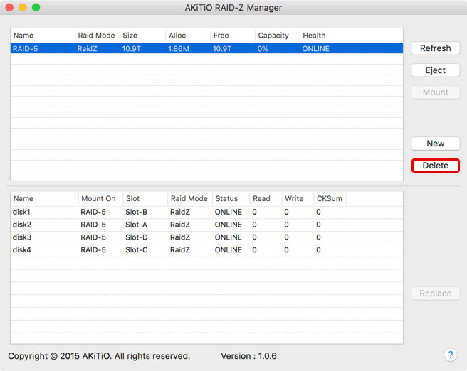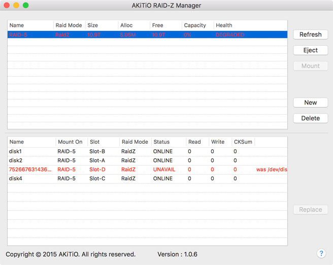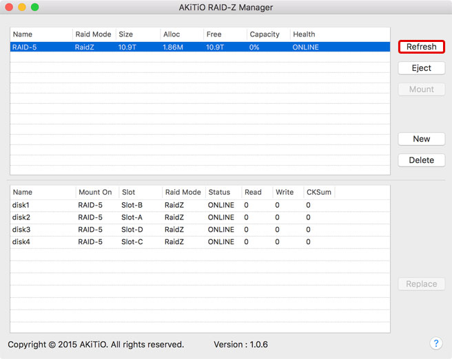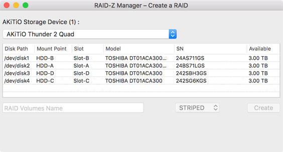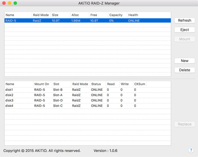 The RAID-Z Manager from AKiTiO provides a graphical user interface (GUI) for the OpenZFS software, making it easier to create and manage a RAID set based on the ZFS file system. The functions, features, security, reliability and compatibility depends completely on OpenZFS and the application only works if the ZFS file system has been installed on that particular system. For more information about OpenZFS, please refer to http://www.open-zfs.org.