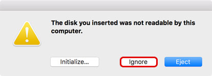 - If some of the drives have been mounted on the desktop, you will get a prompt from the system warning you that the disk you inserted was not readable. This is to be expected and can be safely ignored. Do NOT initialize or eject the disk!