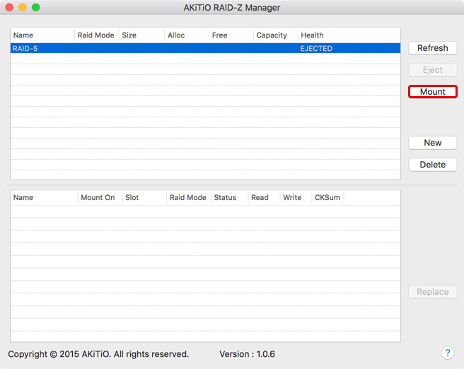 - To mount it again, click Refresh to see the latest status, select the RAID set and then click Mount.