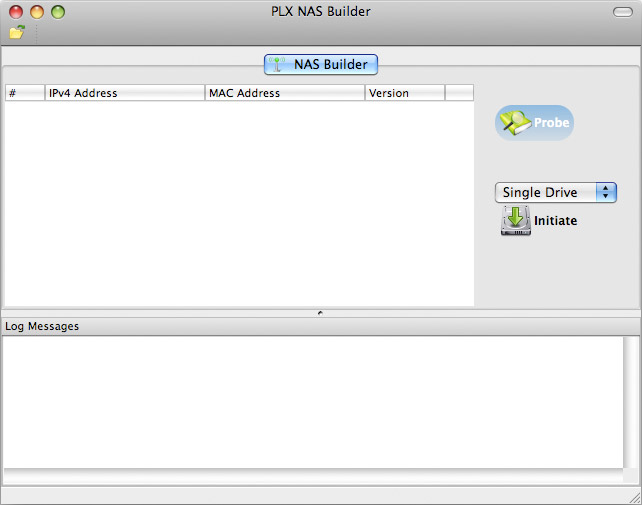 - Wait at least 15 seconds after turning on the network drive and then start the NAS Builder (see Initializing the NAS System on a Mac in the user manual for instructions on how to start the NAS Builder on the Mac).